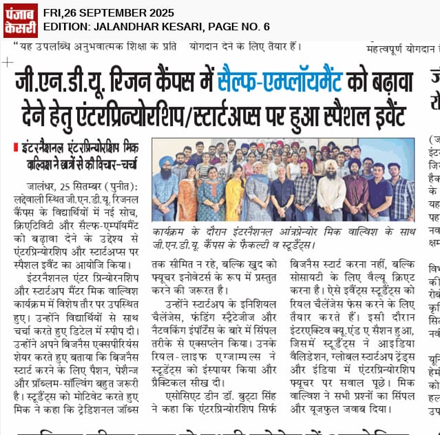 I have great pleasure in welcoming the young aspiring students to the Guru Nanak Dev University Regional Campus Jalandhar.